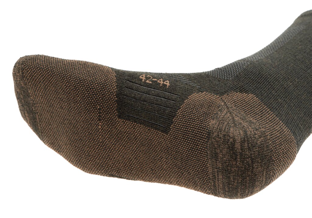 Ponožky Merino Clawgear byly vyvinuty ve spolupráci s evropskými speciálními jednotkami. Což se výrazně promítá do jejich uživatelského komfortu a odolnosti. Díky speciální froté podešvi, která výrazně tlumí nárazy, budete mít pocit komfortu i při celodenním nošení. Síťovaná konstrukce chodidel nabízí výbornou prodyšnost a klima vašim nohám.